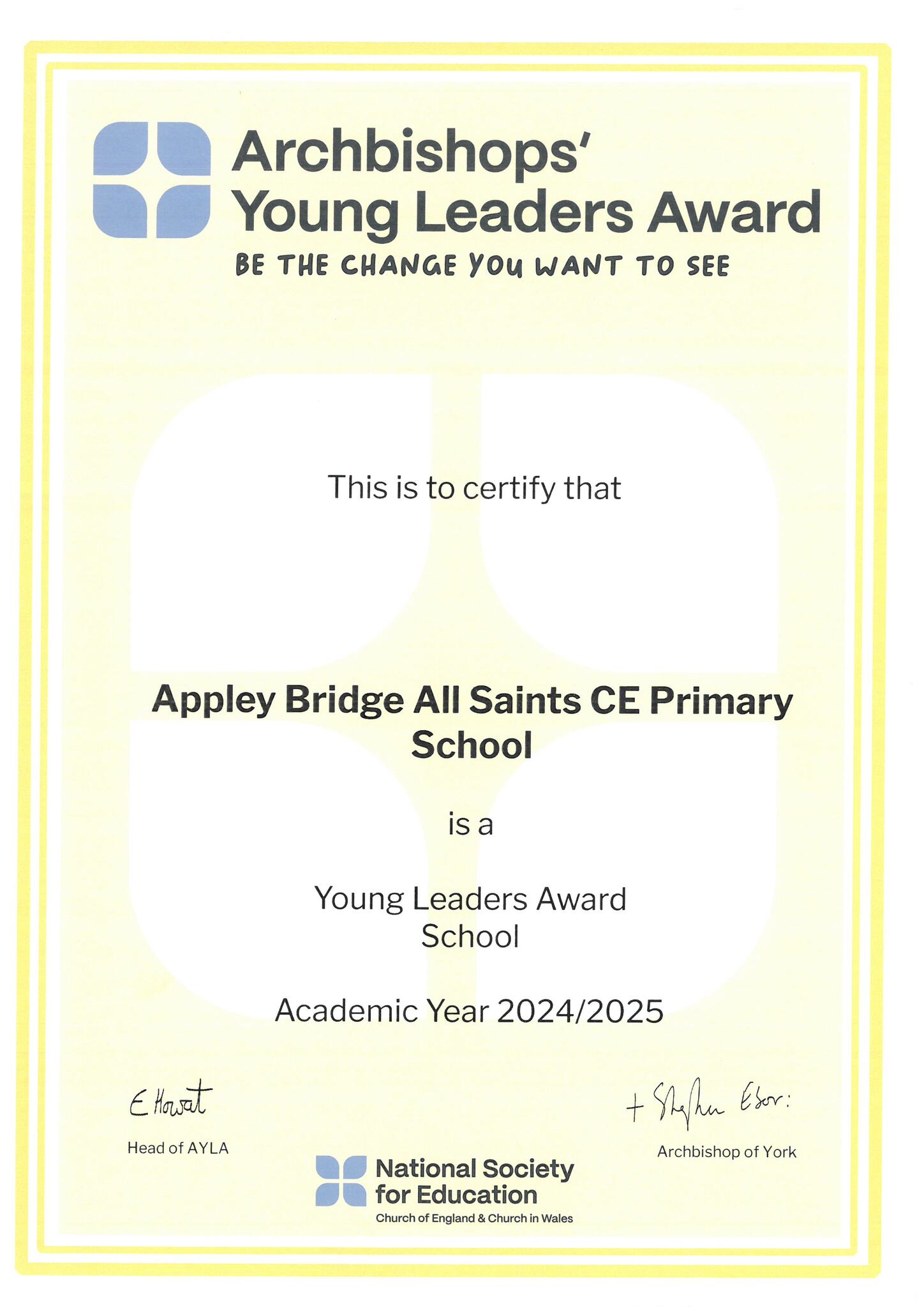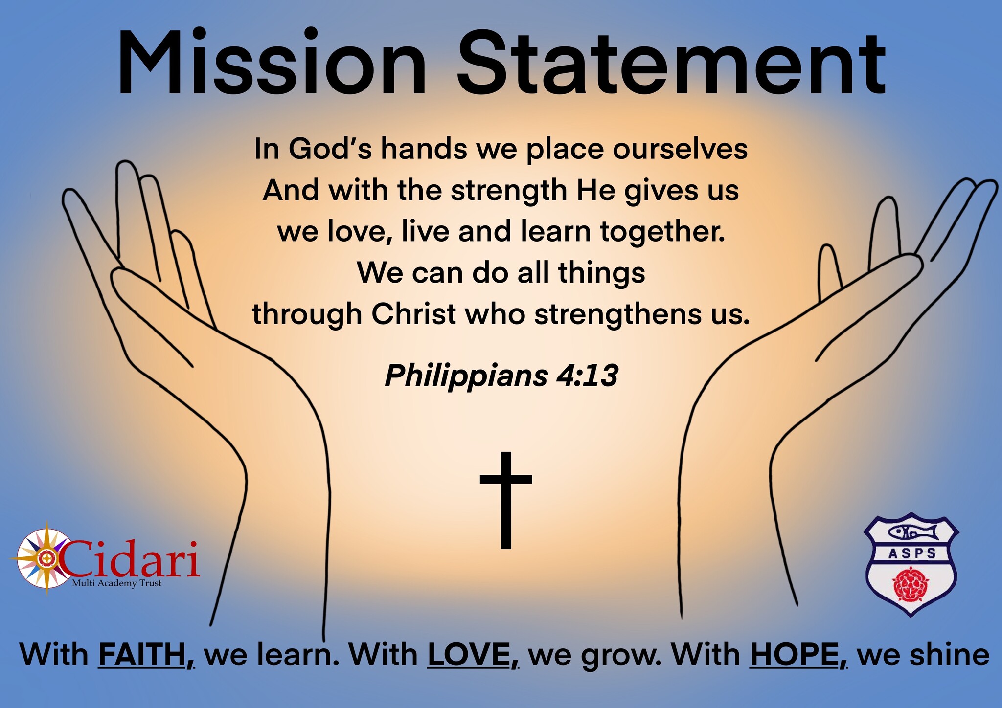 'With FAITH, we learn. With LOVE, we grow. With HOPE, we shine!'
